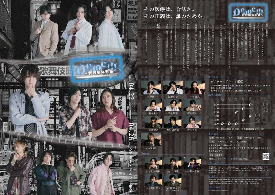 DoooC!!! SCHEDULE 2026/04/22(水) 19:00 - 2026/04/26(日) 16:00 2026 4/22(水)〜4/26(日) シアター・アルファ東京 石井祐介役 URLをコピーする 報告する